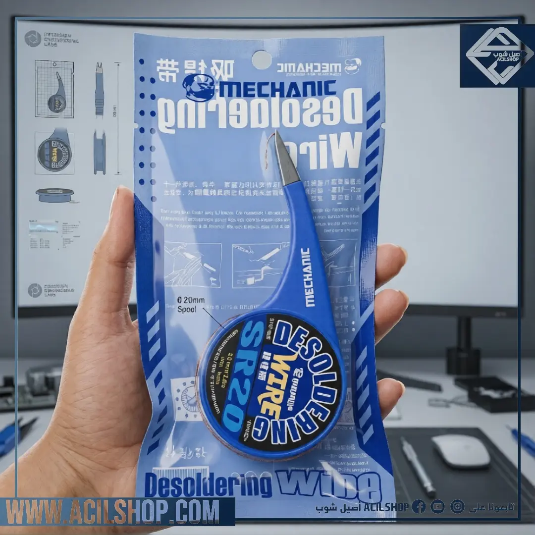 Mèche à dessouder Mechanic SR20 sans halogène, fil à dessouder ultra-faible résidu, clair et transparent avec distributeur à molette anti-chaleur et bec verseur en acier inoxydable pour l’absorption d’étain de divers composants électroniques, tels que la réparation de cartes mères de téléphones portables, de circuits imprimés iPad/tablette et d’autres articles électroniques.